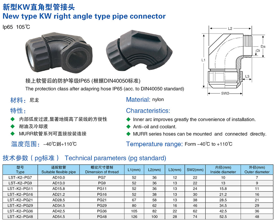 新型KW直角型管接头 - 拖链-钢制拖链-河北PA旗舰厅机件制造有限公司