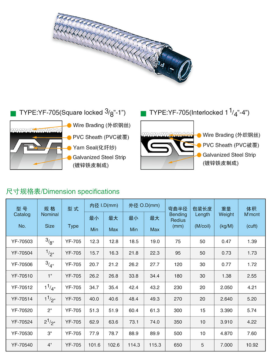(抗拉力型)外层编织棉纱防水防爆电气配管 YF-705