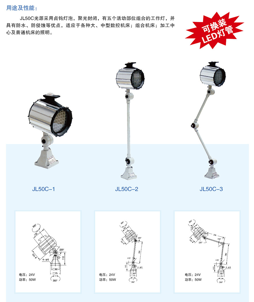 JL50C卤钨泡工作灯 - 拖链-钢制拖链-河北PA旗舰厅机件制造有限公司